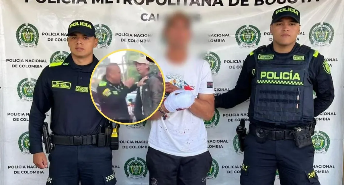 Hombre le dio 'tunda' a policía en Bogotá (y eso que tenía mano herida): al final fue capturado