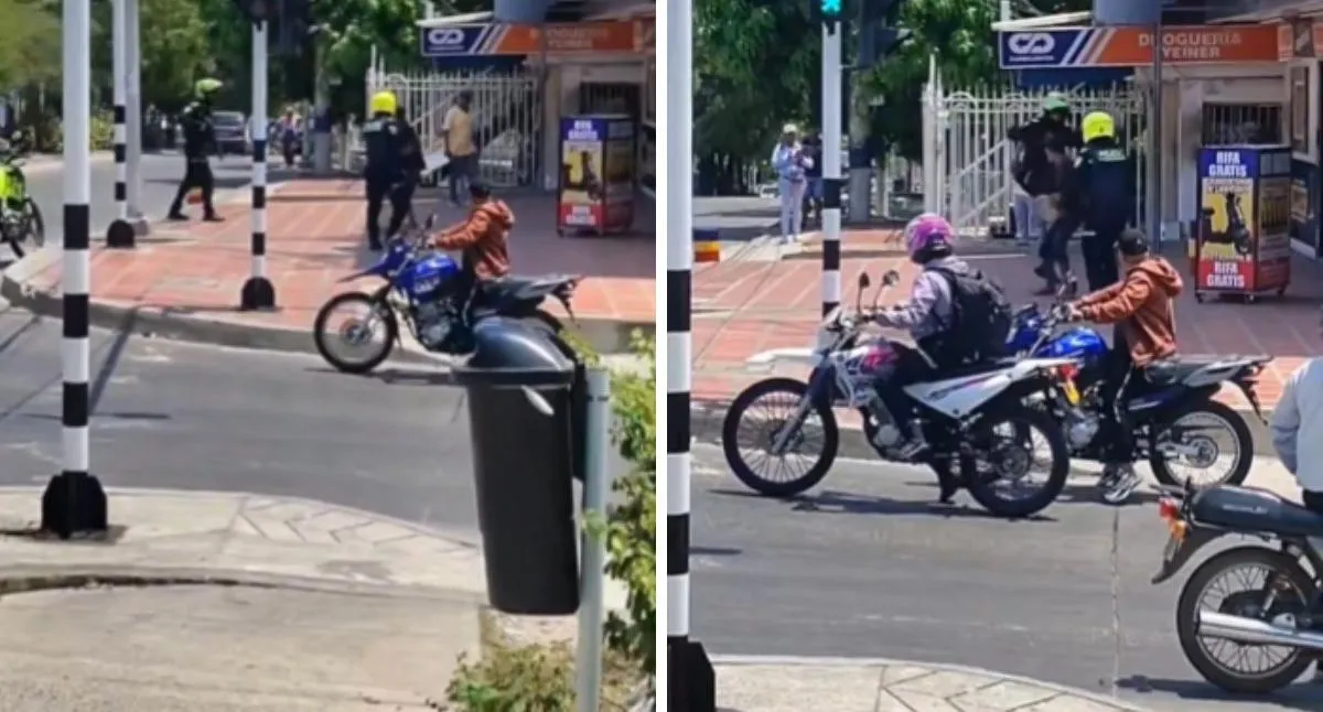 En el video, ampliamente difundido en plataformas digitales, se observa el momento en que dos agentes de la Policía Nacional de Colombia llegan al lugar tras un llamado de la comunidad por una alteración del orden público. Según testigos, comerciantes y residentes alertaron sobre el comportamiento agresivo del individuo, lo que motivó la rápida intervención de los uniformados.
