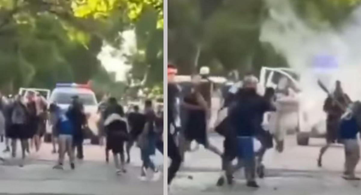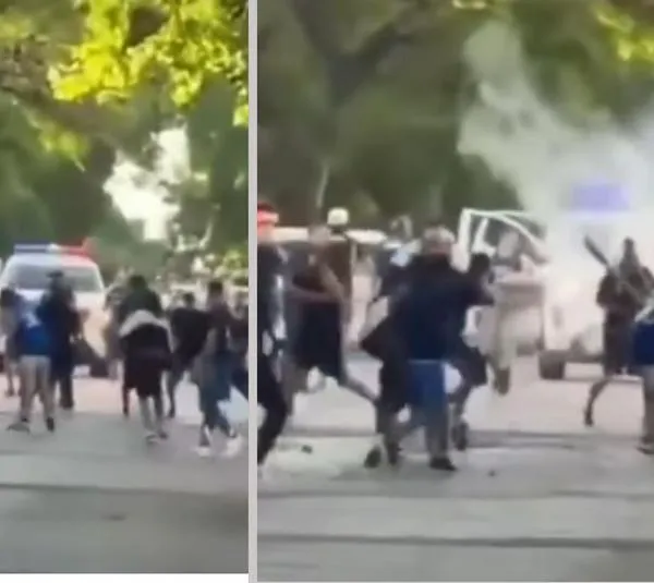 En redes sociales circularon videos que muestran el caos vivido en el sector: corridas, golpes, lanzamiento de objetos y una fuerte intervención policial para dispersar a los involucrados. En algunas imágenes se observa incluso el uso de balas de goma por parte de las autoridades, en un intento por retomar el control de la situación.