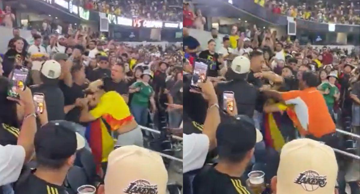 Aunque en términos generales se vio el ambiente festivo en las gradas, en las redes sociales aparecieron unas imágenes en las que se ve una trifulca entre seguidores mexicanos y colombianos.