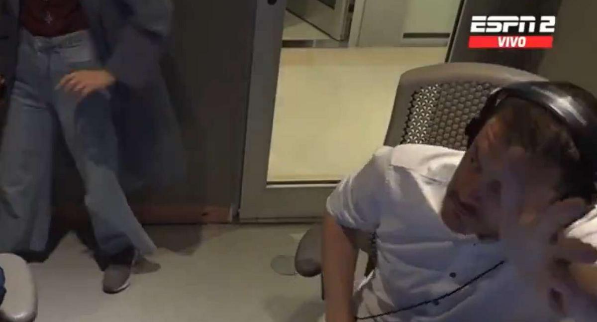 Lo llamativo de la situación fue la sorpresa de ambos, en especial, con la sorpresa del comentarista al verse apuntado por las cámaras cuando estaba en una postura de evidente relajación.