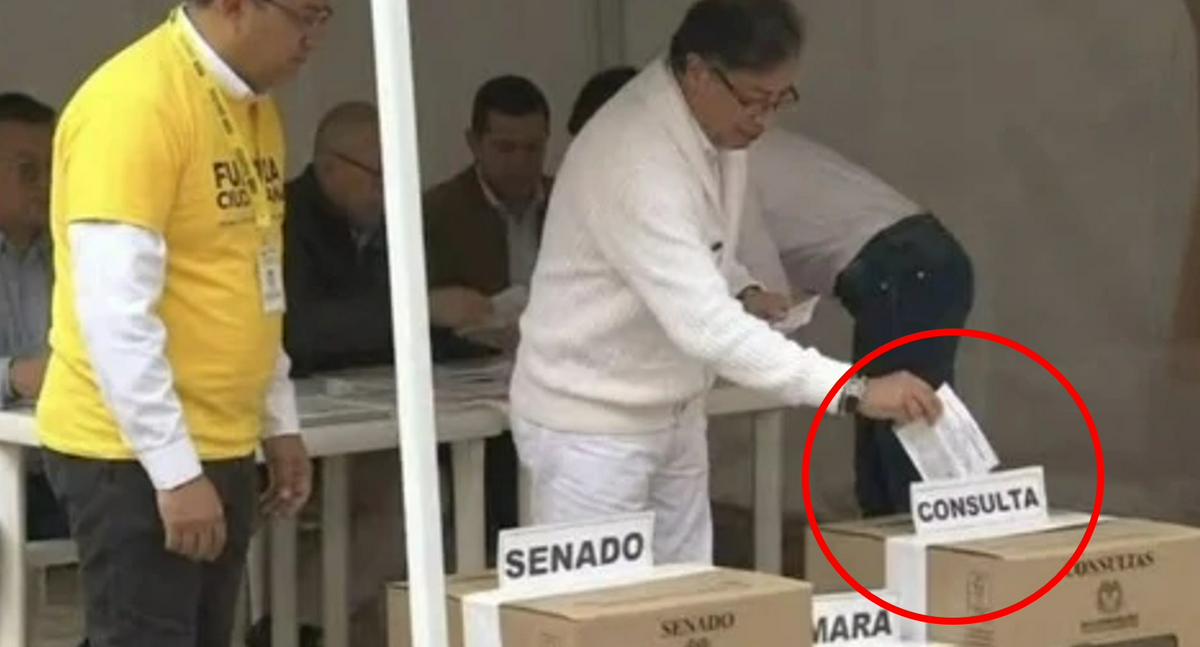 Ese es el caso de una imagen que es viral en redes y que muestra, supuestamente, al presidente Gustavo Petro votando el tarjetón correspondiente a las consultas.