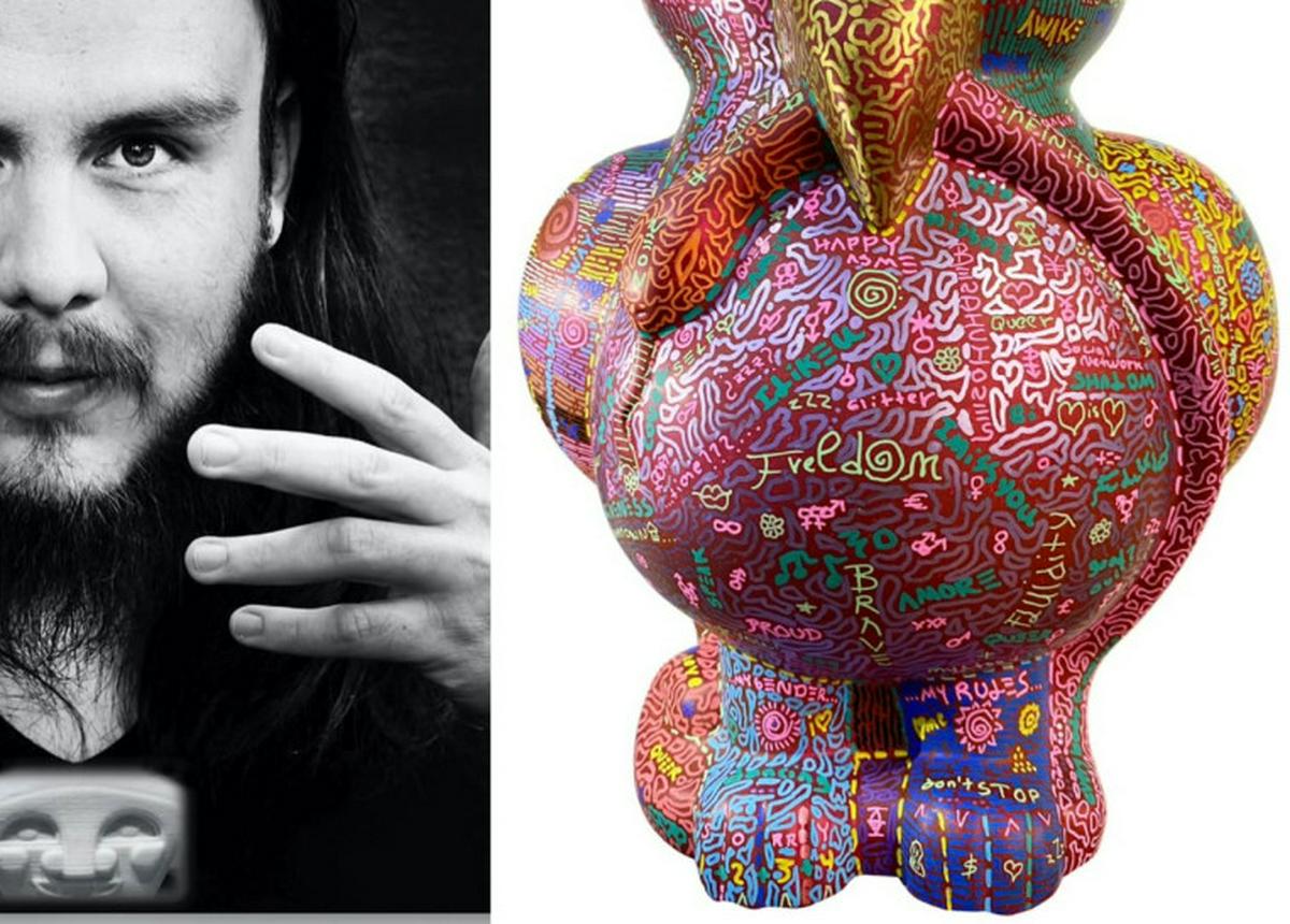 Para la próxima edición de LA Art, el colombiano presentará “Sidereal Eagle”, una escultura de gran formato —con una altura de 1.8 metros— concebida como un tótem. Esta pieza fusiona materiales escultóricos contemporáneos, intervenciones pictóricas y elementos simbólicos, enriquecidos con los “Johnnyglifics”, el lenguaje visual propio del artista. López explica que su trabajo reflexiona sobre la identidad contemporánea como un territorio mutable y en transformación continua, invitando al público a repensar su percepción y su origen.