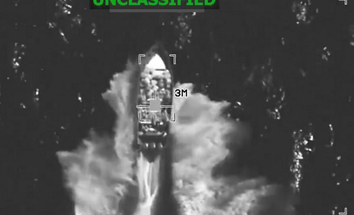 La publicación incluía un video que mostraba una lancha de varios motores cruzando el mar a gran velocidad antes de ser impactada por una explosión que dejó la embarcación en llamas.
