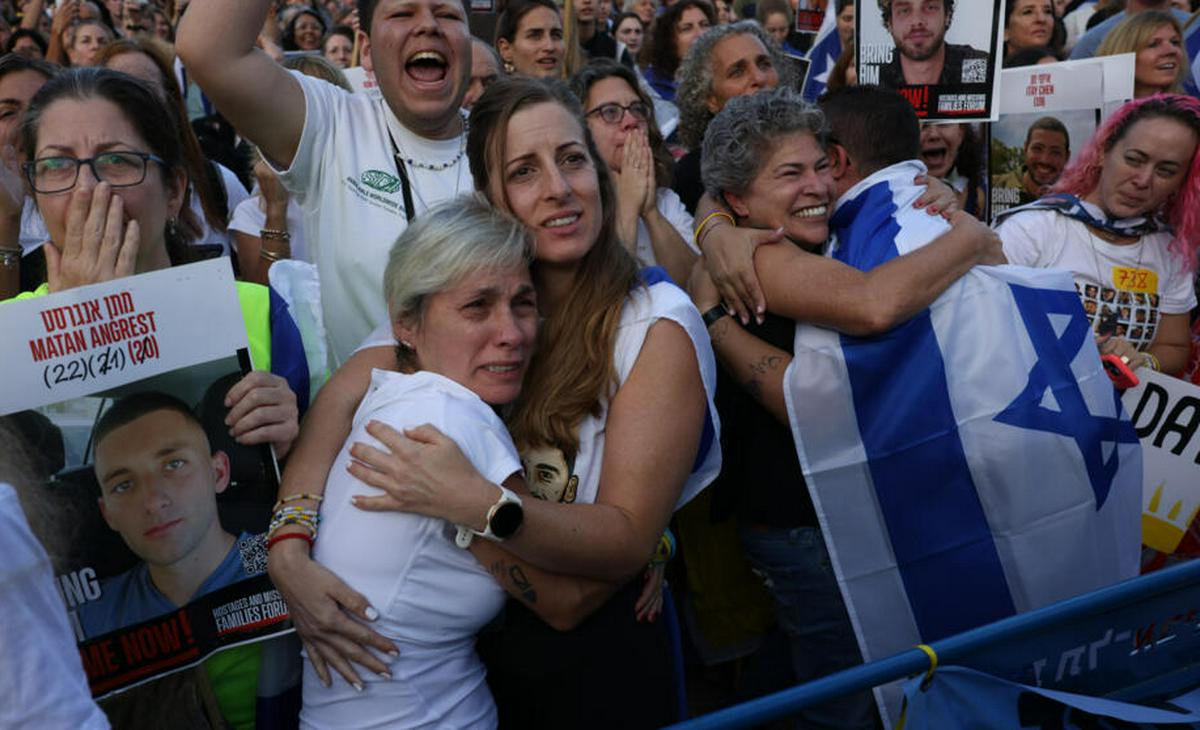 Con abrazos y gritos de alegría, pero también con lágrimas y punzadas de dolor, cientos de personas celebraron en la Plaza de los Rehenes de Tel Aviv las liberaciones de los últimos israelíes retenidos en Gaza desde hace más de dos años.