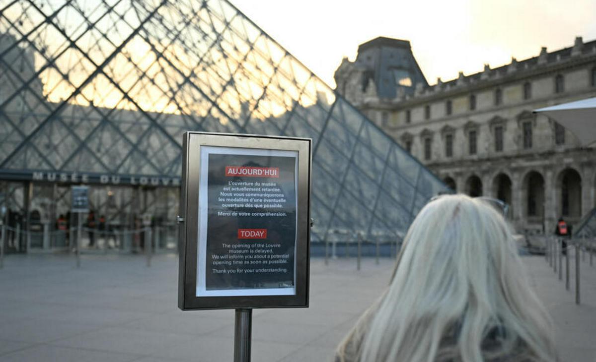 En la entrada del establecimiento, junto a la gran pirámide de cristal, un cartel indicaba poco después de las 09H00 (08H00 GMT): “La apertura del museo está actualmente pospuesta. Les comunicaremos las condiciones de una posible apertura lo antes posible”.