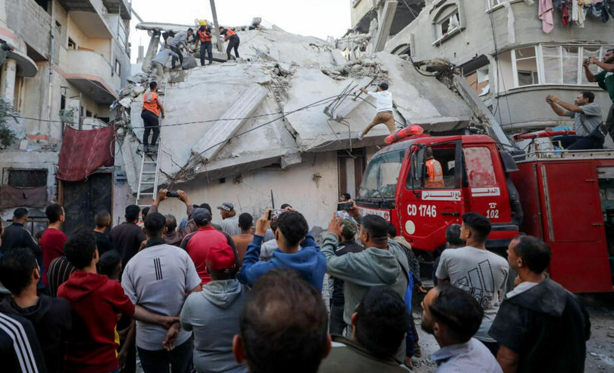 Testigos y médicos aseguraron que la primera de las embestidas impactó un automóvil en el barrio densamente poblado gazatí de Rimal, dejándolo en llamas. La información preliminar no fue suficiente para determinar si las cinco víctimas de ese ataque eran pasajeros del vehículo o transeúntes. Posteriormente, decenas de personas acudieron al lugar para extinguir el fuego y adelantar labores de rescate.