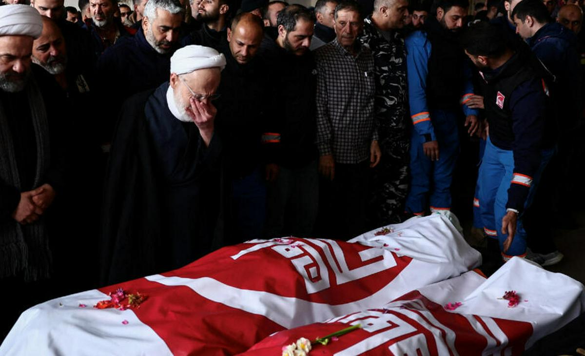 Este miércoles, entre llantos desconsolados, decenas de sus compañeros, se congregaron en la ciudad de Nabatieh para los funerales de los dos paramédicos, que, como indicó la cartera sanitaria libanesa, vestían sus uniformes y viajaban en una motocicleta claramente identificada como ambulancia al momento del ataque.