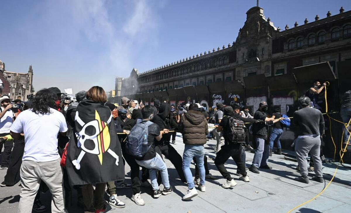 Los asistentes llegaron frente al Palacio Nacional de México, donde vive y despacha Sheinbaum, y derribaron algunas de las vallas metálicas que resguardaban el edificio, ubicado en el Zócalo, la plaza pública más importante del país.