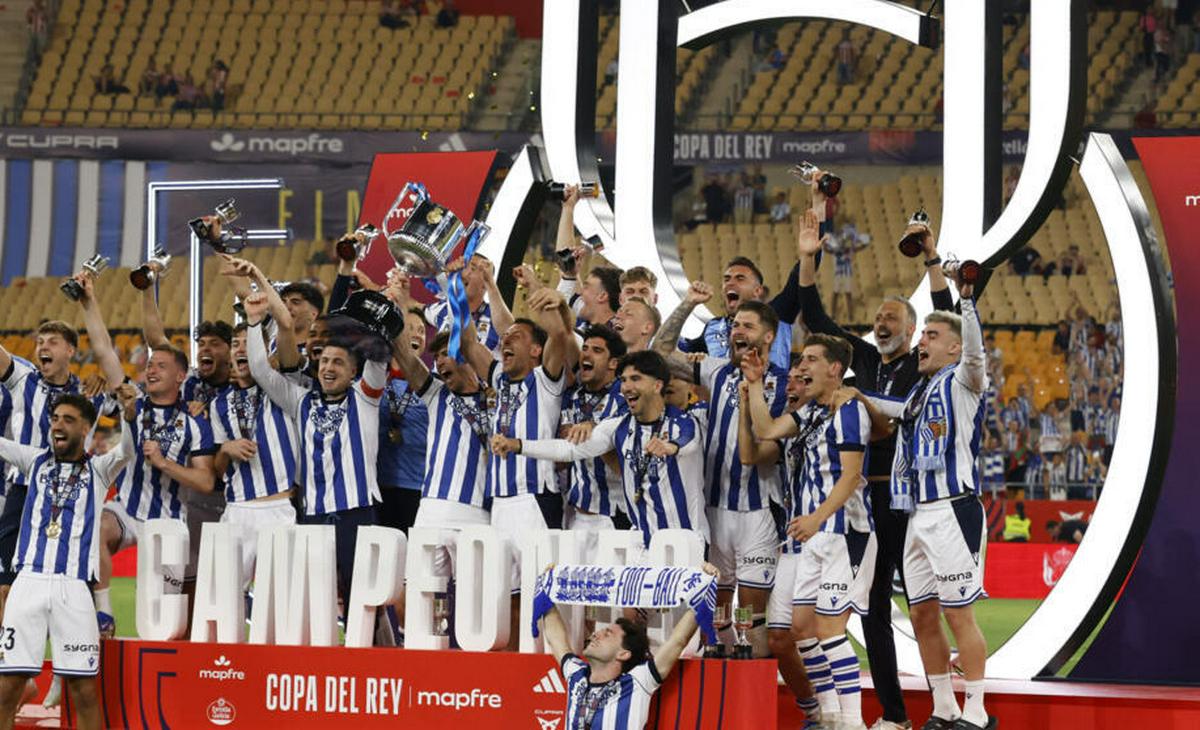 La Real Sociedad se proclamó campeona de la Copa del Rey en Sevilla y, tras llegar a la prórroga con 2-2 ante el Atlético de Madrid, se llevó la gloria en una tanda de penaltis en la que Unai Marrero, habitual en este torneo y suplente en Liga, fue el héroe al detener dos lanzamientos, al noruego Sorloth y al argentino Julián Álvarez, mientras que Pablo Marín marcó el último gol.