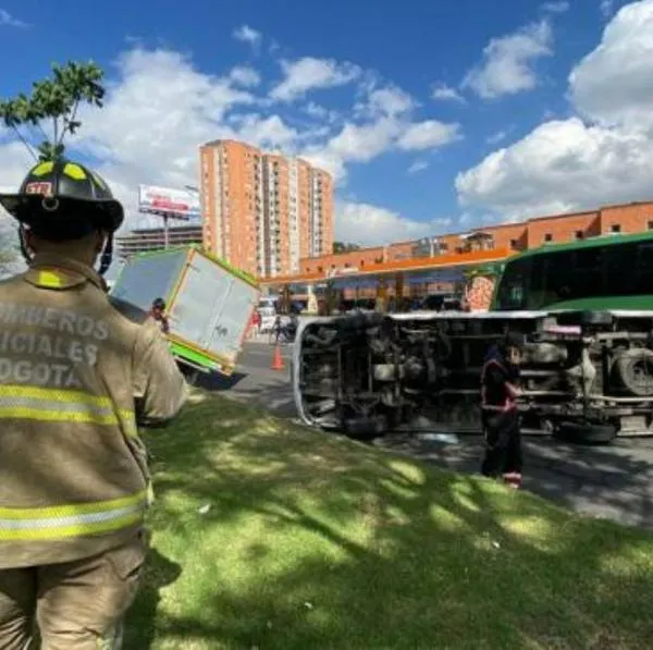 “Bomberos de la estación Ferias controlan riesgos asociados por colisión entre un camión y una van de servicio especial, la cual sufrió volcamiento lateral, en la cra 72 con cll 95”, informó el cuerpo de Bomberos de la ciudad.