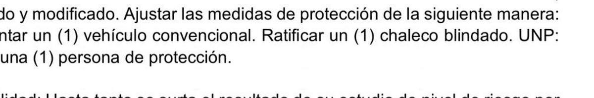 La respuesta de la UNP determinó algunas acciones preventivas: la asignación de un vehículo convencional, el uso de un chaleco blindado y la ratificación de una persona encargada de su protección. Sin embargo, dadas las circunstancias, estas acciones han sido consideradas insuficientes por la gravedad de la amenaza.