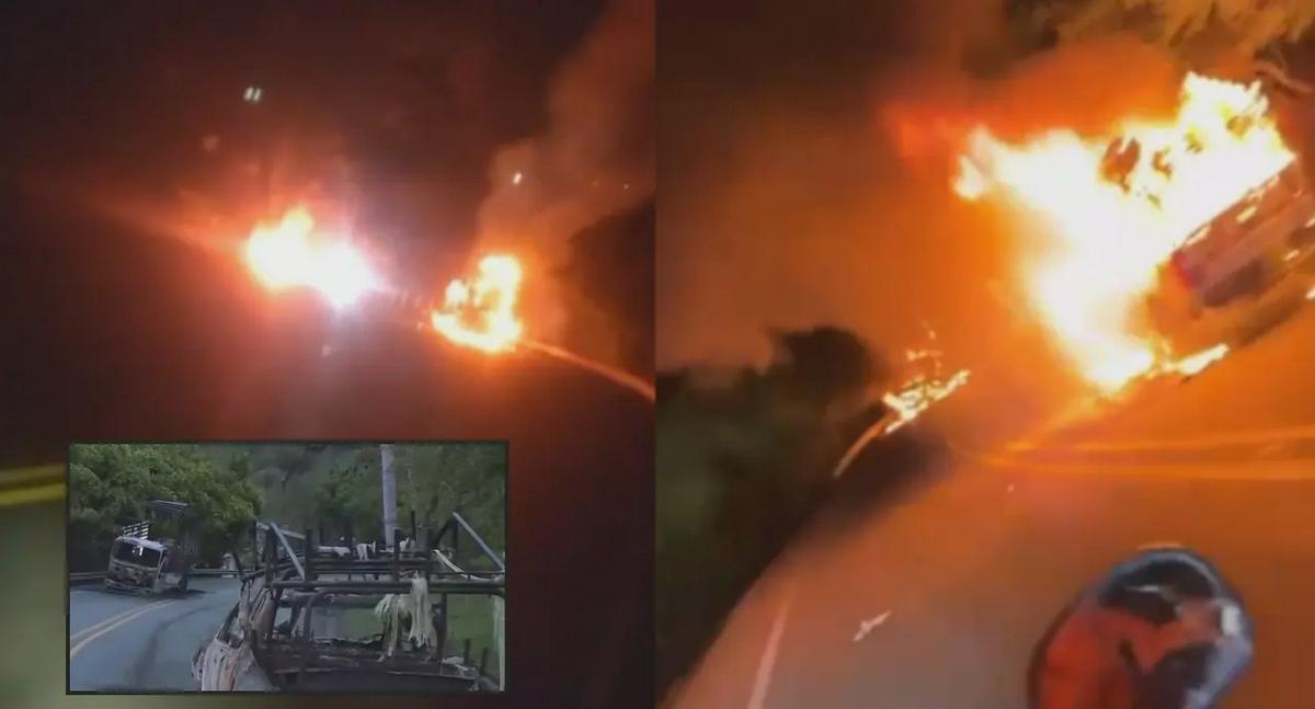 Sobre las siete de la noche del lunes, hombres vestidos con prendas negras y portando armas de fuego de largo alcance, detuvieron tres vehículos, intimidaron a los conductores, los obligaron a bajar y les prendieron fuego a los automotores.