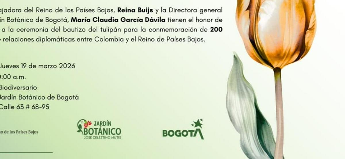 El Jardín Botánico de Bogotá José Celestino Mutis (JBB) se prepara para un acto significativo: el bautizo de un tulipán, programado para el jueves 19 de marzo de 2026. Este evento, que será realizado a las 10:00 a. m. en el Biodiversario del propio Jardín Botánico, ubicado en la Calle 63 # 68-95, obedece al deseo de conmemorar los doscientos años de relaciones diplomáticas entre Colombia y el Reino de los Países Bajos. Esta ceremonia cuenta con la presencia destacada de la embajadora de Países Bajos, Reina Buijs, junto a la directora del JBB, María Claudia García, quienes unirán sus voces en un gesto simbólico de amistad y reconocimiento bilateral, según información oficial de bogota.gov.co.