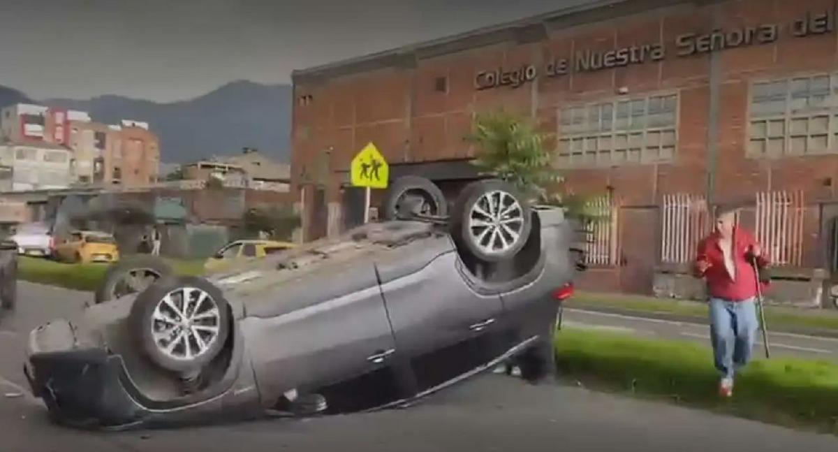 Un fuerte accidente de tránsito se registró este martes en la calle 63 con carrera 28, sentido oriente – occidente, donde un vehículo terminó volcado frente al colegio Nuestra Señora Del Pilar, afectando la movilidad en este sector de la localidad de Barrios Unidos, de Bogotá.