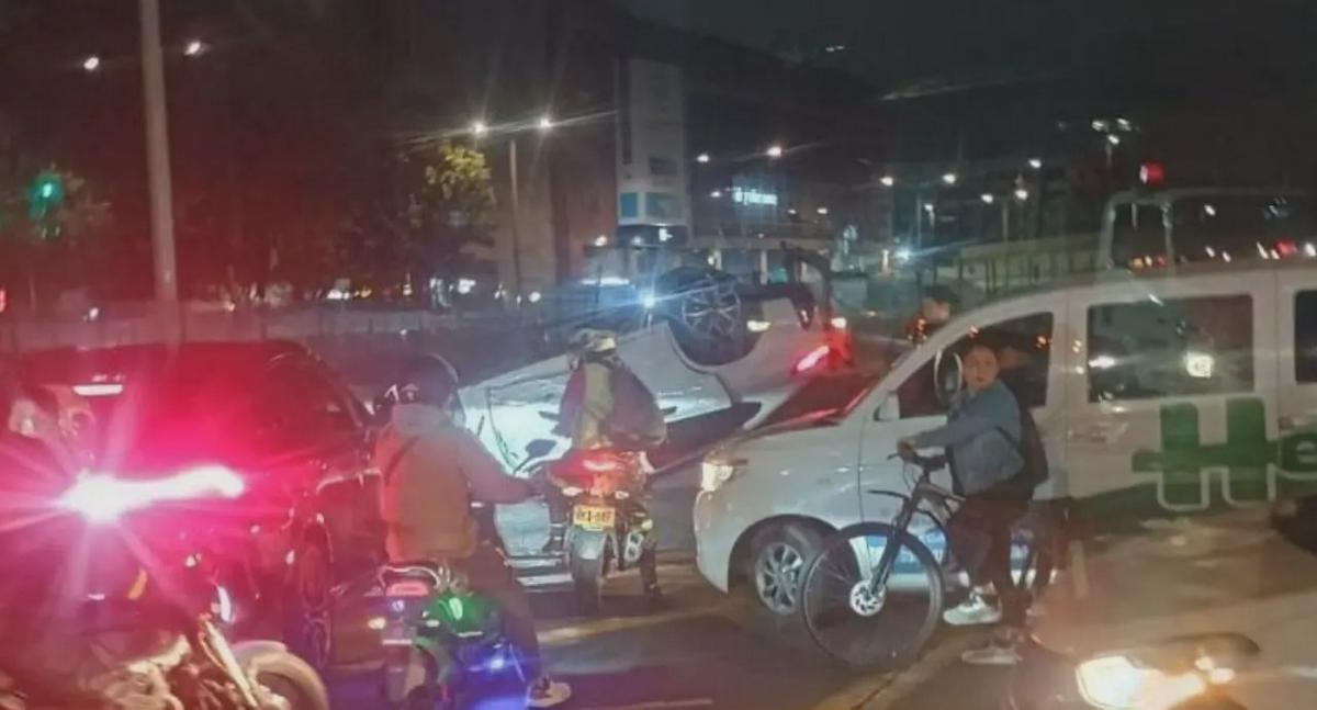 Accidente cerca de Iserra 100 (Bogotá) dejó un carro volcado y viernes arrancó con trancones