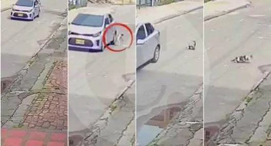 Una cámara de vigilancia captó el momento en el que la mascota salió volando por una de las ventanillas, cayó al asfalto dando vueltas, y luego se levantó. El carro continuó su trayecto.