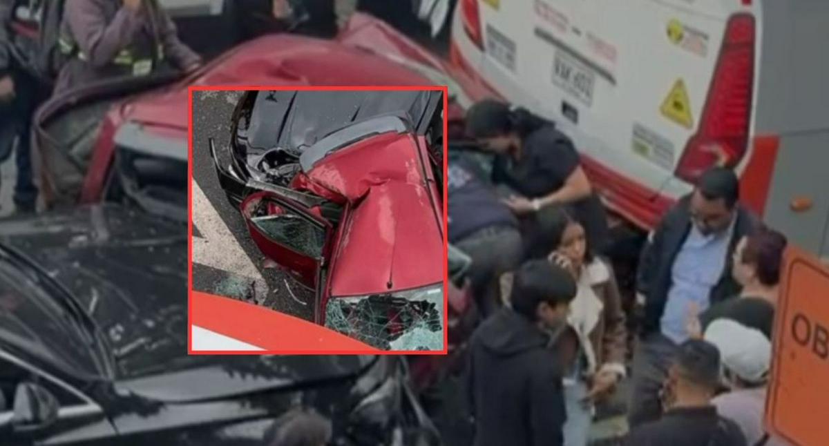 De acuerdo con los primeros informes conocidos por las autoridades, uno de los carros habría impactado al vehículo que iba delante y esto provocó una colisión en cadena contra un bus, dejando a uno de los conductores atrapado dentro del automotor más afectado.