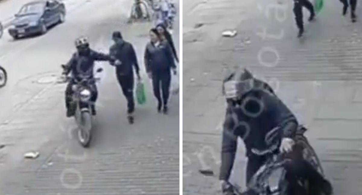Un nuevo caso de inseguridad quedó registrado en video en el barrio El Pinal, ubicado en la localidad de Kennedy, en el sur de Bogotá. En las imágenes se observa el momento en que un hombre que caminaba tranquilamente por el andén es sorprendido por un ladrón que, sin bajarse de su moto, le arrebata el celular de las manos y huye a toda velocidad.