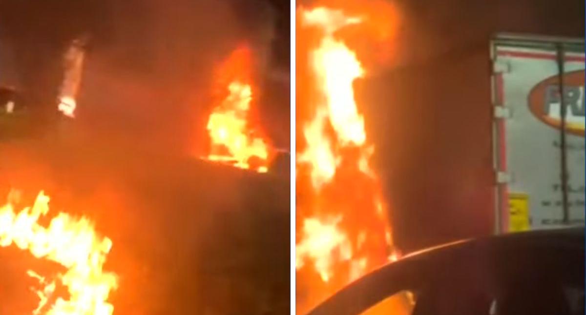 Sobre las 6:00 a. m. de este 18 de febrero se reportó un fuerte incendió en la concurrida vía que va desde Cajicá a Chía. En las imágenes que se han viralizado, se observa al container en llamas a la lado derecho sin la vía.