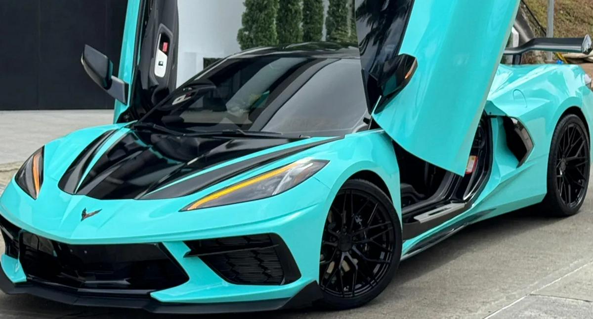Un lujoso Chevrolet Corvette C8 Stingray, de color azul menta con detalles negros, se convirtió en el epicentro de una controversia vial este lunes en el barrio La Castellana, al noroccidente de la capital.