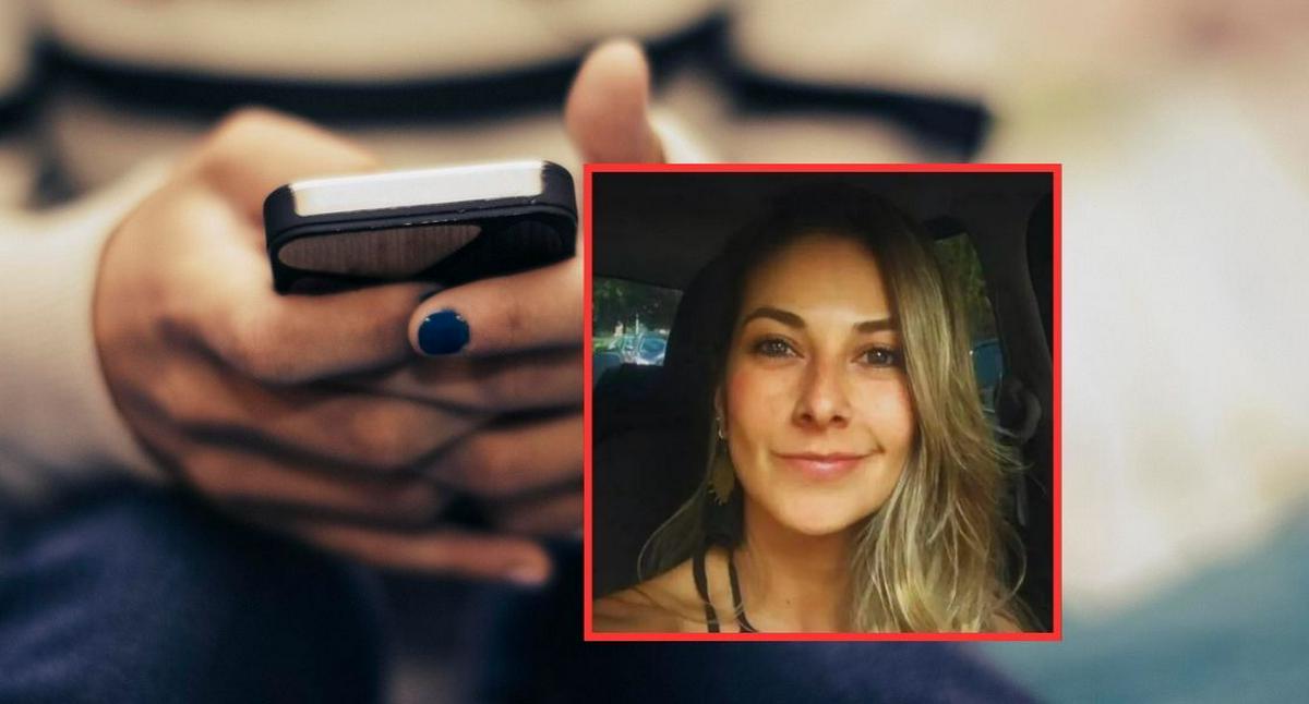 Al fondo, mujer manipulado celular (Getty, de referencia); y en el recuadro, Diana Ospina (Facebook de Diana Ospina)