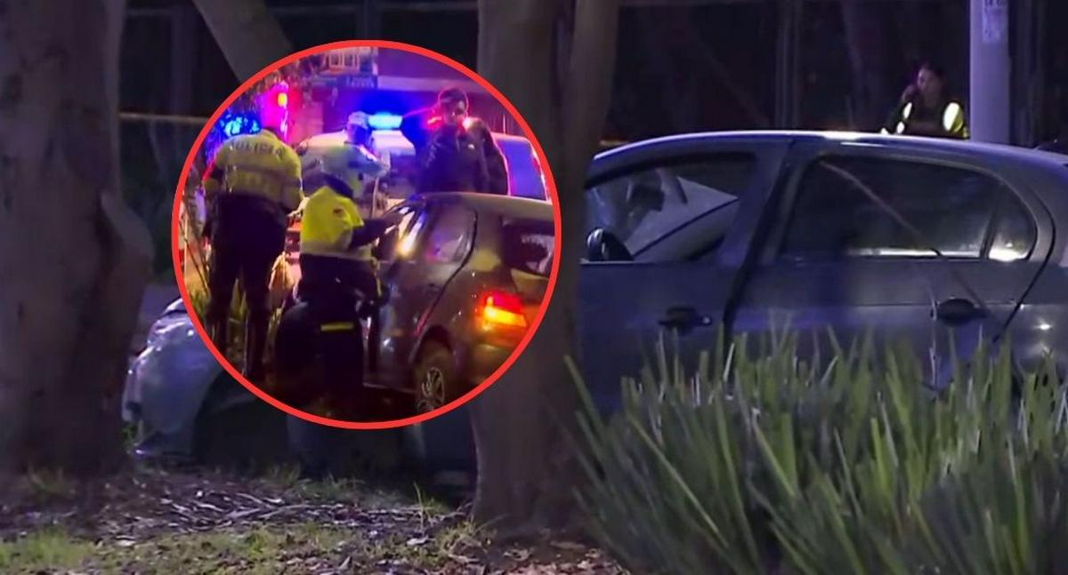 La primera imagen que encontraron los uniformados de la Policía de Tránsito de Bogotá al llegar al barrio Bosque Popular, localidad de Kennedy, sobre las 3:40 de la mañana, fue un vehículo chocado contra un árbol y encima de un separador.