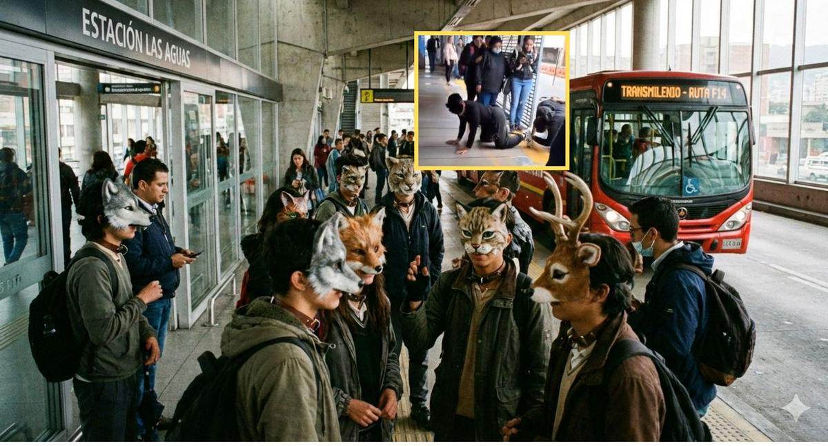 En la mañana de este 19 de febrero se registró una escena inusual en Bogotá. En la estación Temporal Calle 34 del sistema Transmilenio, sobre la avenida Caracas, un grupo de jóvenes fue visto usando máscaras de perros y actuando como si fueran ese animal, en un hecho que quedó grabado y difundido en redes sociales.