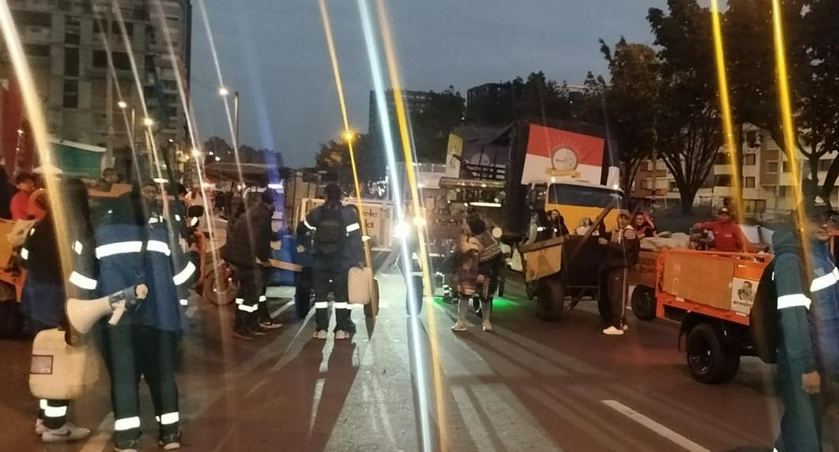 La protesta es protagonizada por recicladores que manifiestan su inconformidad con la Alcaldía de Bogotá. Según lo señalado por los manifestantes, el motivo principal del bloqueo es el retiro del material reciclable que recolectan, lo que afecta directamente su sustento diario y pone en riesgo su actividad económica.