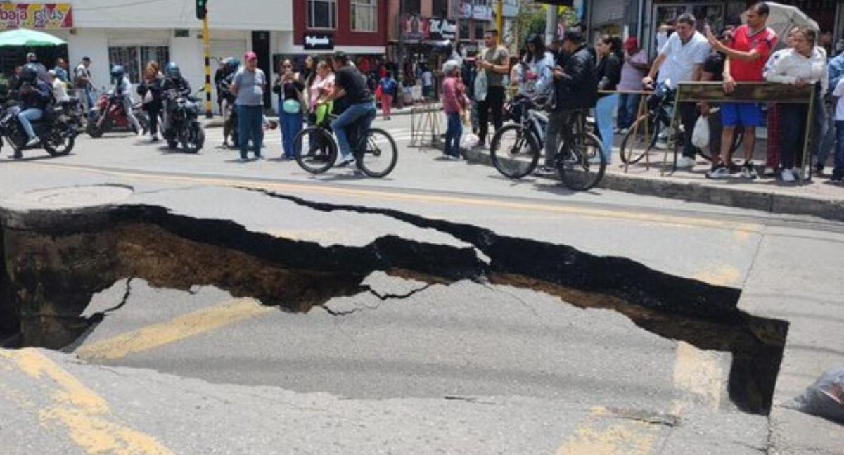 Los habitantes del barrio La Gaitana, en la localidad de Suba, vivieron un mediodía de pánico este sábado 7 de marzo. Sin previo aviso, el asfalto de una de sus vías principales cedió por completo, dejando un cráter de grandes proporciones que por poco provoca una tragedia. La emergencia se registró exactamente en la calle 139 con carrera 126A, a pocos metros del CAI del sector, según informó el periodista ‘Gato’ Gómez, de Olímpica Stereo.