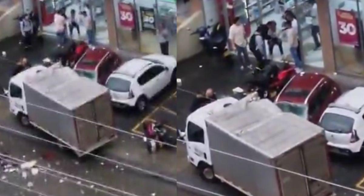 Videos difundidos en redes sociales muestran el momento posterior al desplome, cuando el automóvil quedó seriamente averiado tras el impacto contra el pavimento. Las imágenes evidencian la fuerza de la caída y la reacción de las personas que se encontraban cerca, quienes intentaron auxiliar a los afectados mientras llegaban los equipos de emergencia.