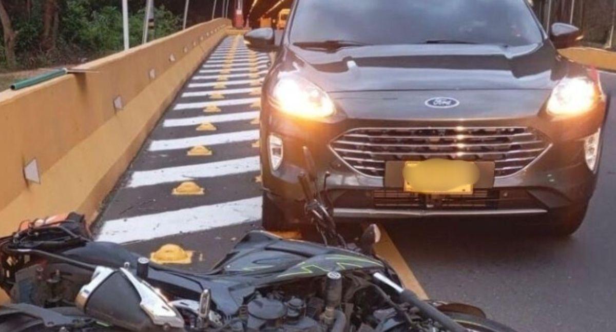 #PELIGRO 🚨 Siniestro vial se registró en el túnel de Gualanday (Tolima) luego de que una camioneta Ford, placas LUX-537 de Funza, circulara en contravía y chocara contra una motocicleta. La peligrosa maniobra, ocurrida este 23DIC, quedó registrada por las cámaras del viaducto. pic.twitter.com/dFEJJbDzOk