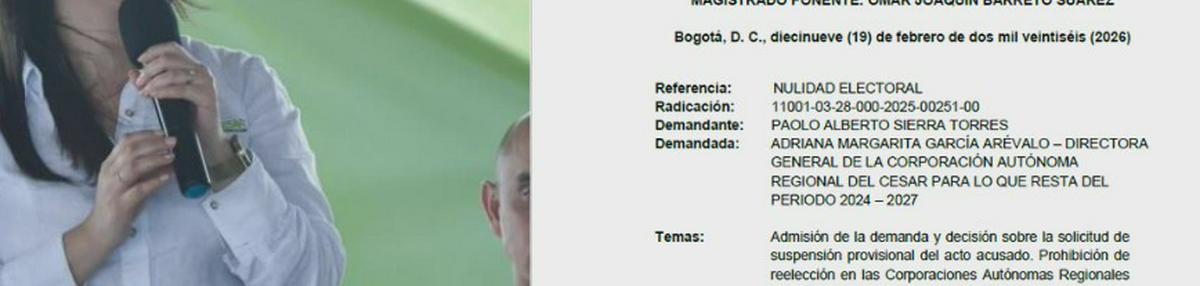 El origen de este litigio se remonta a la acción presentada por Paolo Alberto Sierra Torres, ciudadano que busca anular el Acuerdo 12 del 31 de octubre de 2025, contenido por medio del cual el Consejo Directivo de Corpocesar eligió a García Arévalo para ocupar la dirección de la corporación durante el periodo 2024-2027. Sierra Torres fundamentó su demanda en dos supuestas irregularidades detectadas durante el proceso de designación. En primer lugar, alegó la existencia de una probable violación a la prohibición de reelección consagrada en el artículo 28 de la Ley 99 de 1993, argumentando que la funcionaria ya había sido elegida en ese mismo cargo en dos ocasiones previas, las cuales, además, fueron anuladas por el Consejo de Estado. En segundo término, señaló fallas en el procedimiento de elección, acusando que el Consejo Directivo no resolvió recusaciones interpuestas contra algunos de sus miembros por parte de Xenia López Flórez y Diana Silva Montero.