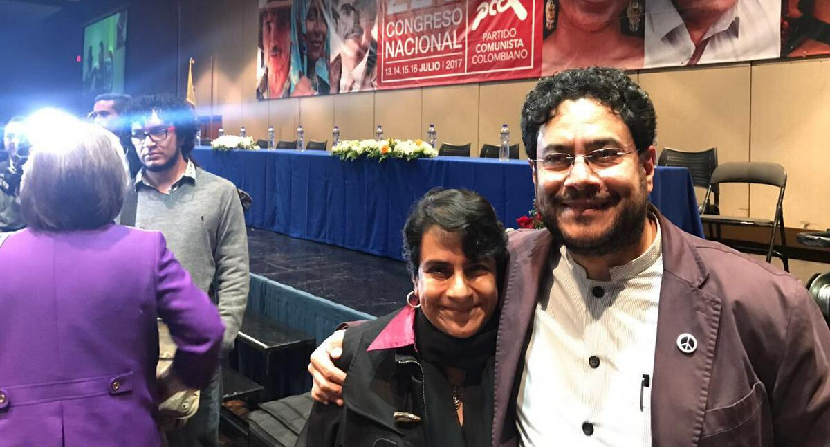Las imágenes fueron originalmente publicadas por el propio congresista en 2017, durante la instalación del 22.º Congreso del Partido Comunista Colombiano, y permanecen disponibles en su cuenta oficial de X (antes Twitter). En ellas se aprecia el escenario del evento con simbología política y un gran retrato del exjefe guerrillero al fondo.