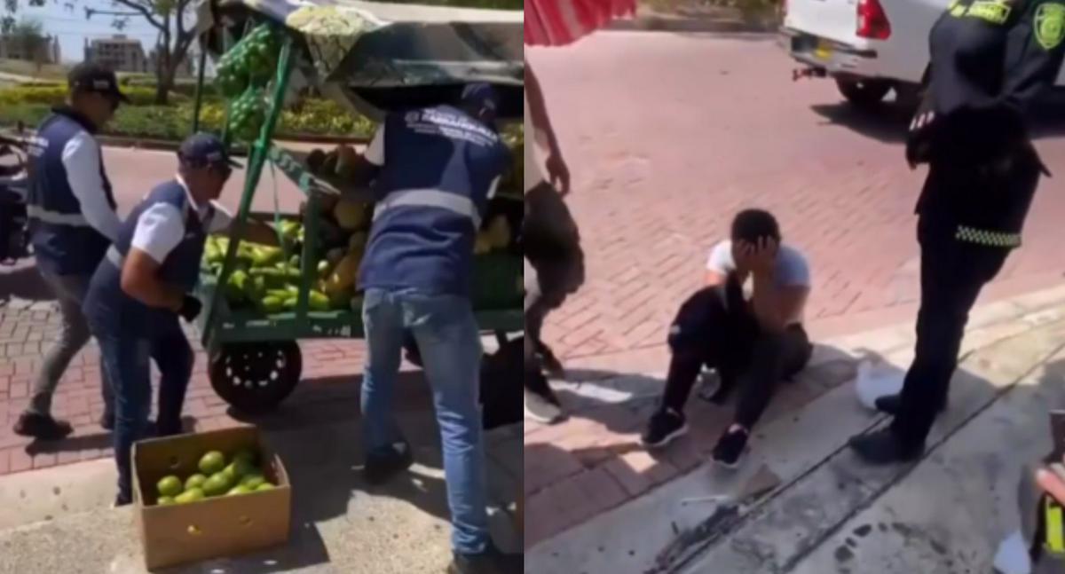 De acuerdo con las imágenes, al menos tres funcionarios comenzaron a desocupar la carretilla, que contenía distintos productos, y los trasladaron a cajas. La mujer, propietaria del vehículo, se encontraba en el suelo llorando, mientras era acompañada por uniformados de la Policía, sin que pudiera intervenir para evitar que le retiraran su herramienta de trabajo.