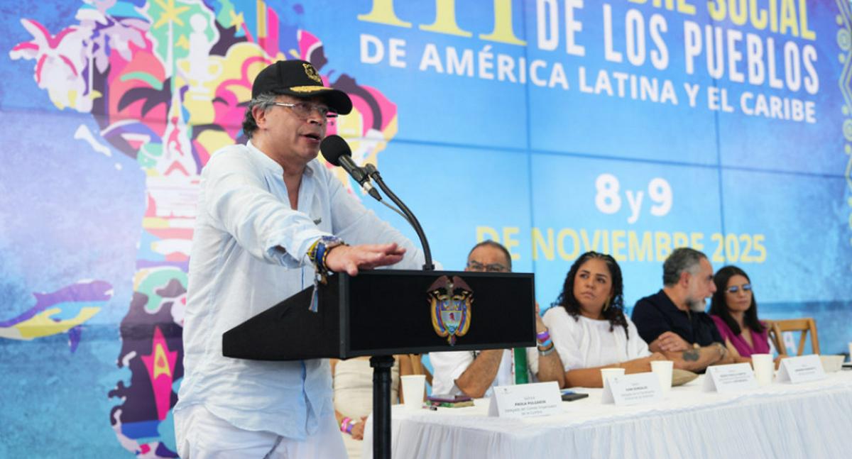 Durante su intervención en la III Cumbre Social de los Pueblos de Latinoamérica y el Caribe, Petro también celebró que en la última Asamblea General de las Naciones Unidas en Nueva York, en septiembre pasado, “dos personas se sintieron completamente solas: el señor Trump y (el primer ministro de Israel, Benjamín) Netanyahu”.