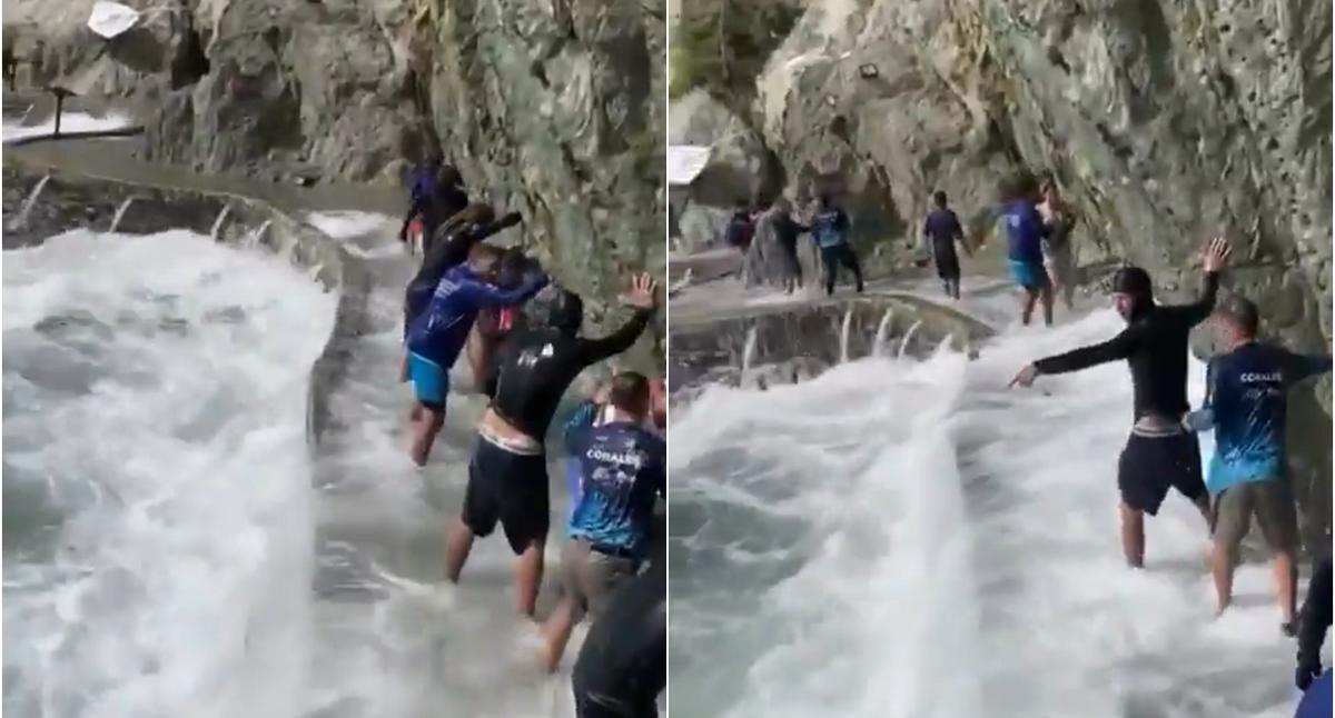 En los videos compartidos por testigos se observa cómo el nivel del mar sube de forma repentina, alcanzando áreas donde normalmente los turistas caminan o descansan. En algunos casos, las personas tuvieron que correr o sujetarse de estructuras cercanas para evitar ser arrastradas por las olas que golpeaban con fuerza la orilla.