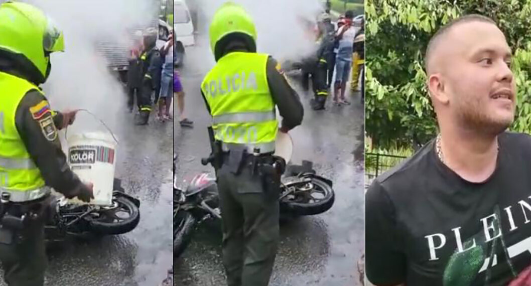 Las autoridades llegaron hasta el lugar y lograron la aprehensión de los presuntos ladrones. Posteriormente, uno de los uniformados tomó un balde con agua y apagó las llamas que consumían la motocicleta hecho que generó el disgusto de la comunidad.