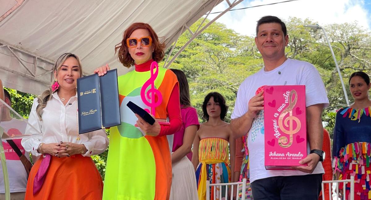 En el marco de la cumbre, la diseñadora fue condecorada por el Concejo de Ibagué con la distinción Policarpa Salavarrieta. Además, le fueron entregadas las llaves de la ciudad, una escultura en miniatura de una nota musical y una pasarela con sus colores característicos, como homenaje a su trayectoria, creatividad y apuesta por la moda sostenible.
