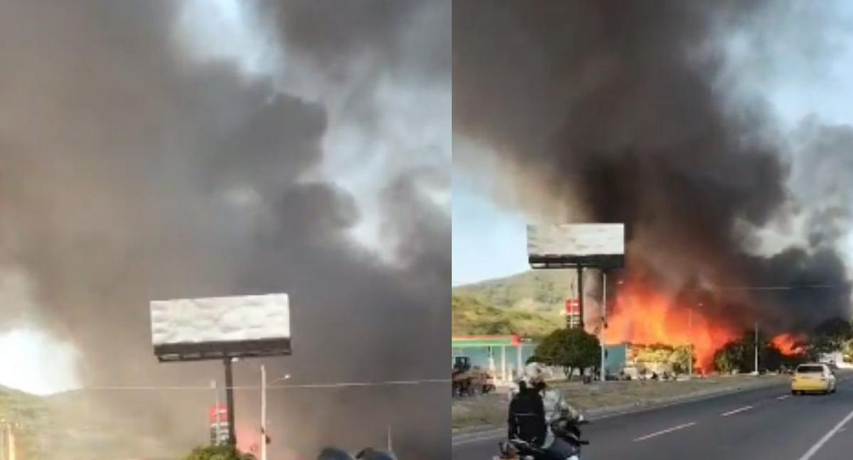 A esta hora en Santa Marta se registra un incendio de grandes proporciones en una bodega de una fábrica de madera ubicada sobre la Troncal del Caribe pic.twitter.com/0qqWs783Te