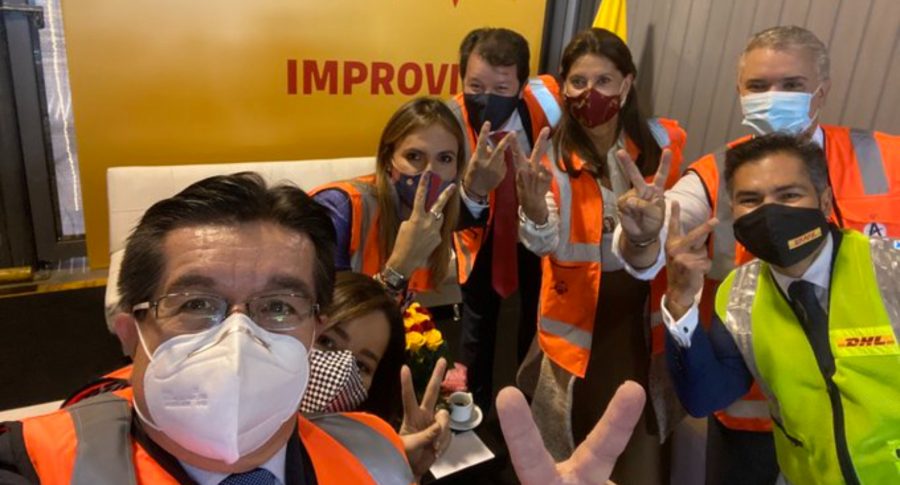 Finalmente, el 15 de febrero llegaron las primeras vacunas a Colombia y el presidente estuvo allí para recibirlas junto al ministro Fernando Ruiz y tomarse una selfi que se volvió histórica para el país. [Vea acá: Los mejores memes por llegada de vacunas a Colombia, con Duque y más protagonistas]