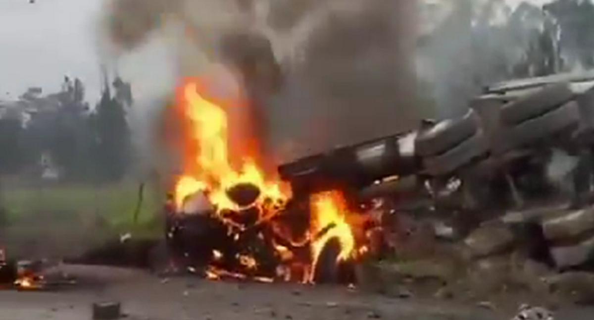 Videos difundidos en las últimas horas muestran el estado de la mula que causó el fatal choque. La misma quedó totalmente destruida, incendiada y volcada a un lado de la vía.