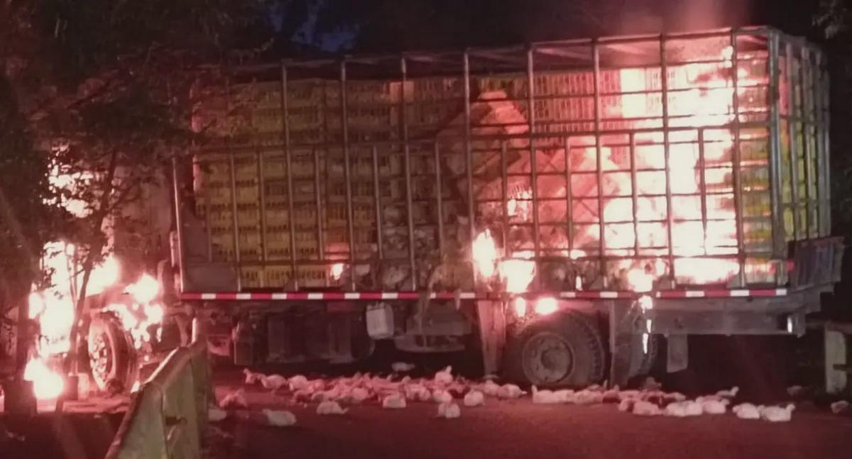 El automotor llevaba un cargamento de pollos vivos y fue atravesado en la vía, lo que impidió el paso normal por el sector. Posteriormente, el camión fue incendiado en el mismo punto, generando el bloqueo total del corredor vial. Esta situación provocó la interrupción del tránsito hacia diferentes zonas rurales del municipio de Jamundí.