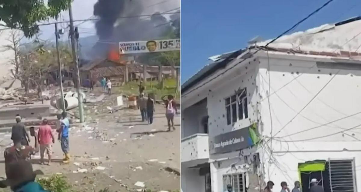 Las disidencias de las Farc utilizaron fusiles, drones y pipetas explosivas en Buenos Aires. Con la toma, el municipio quedó prendido en llamas y en ruinas.
