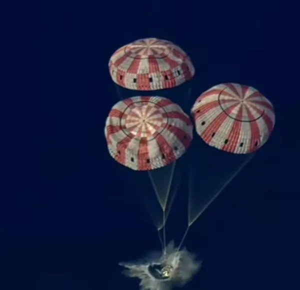 Su nave espacial Orion atravesó la atmósfera terrestre a más de 38.000 km/h, con temperaturas superiores a los 2.700 grados Celsius generadas por la fricción, y amerizó sin problemas en el océano Pacífico, gracias a grandes paracaídas.