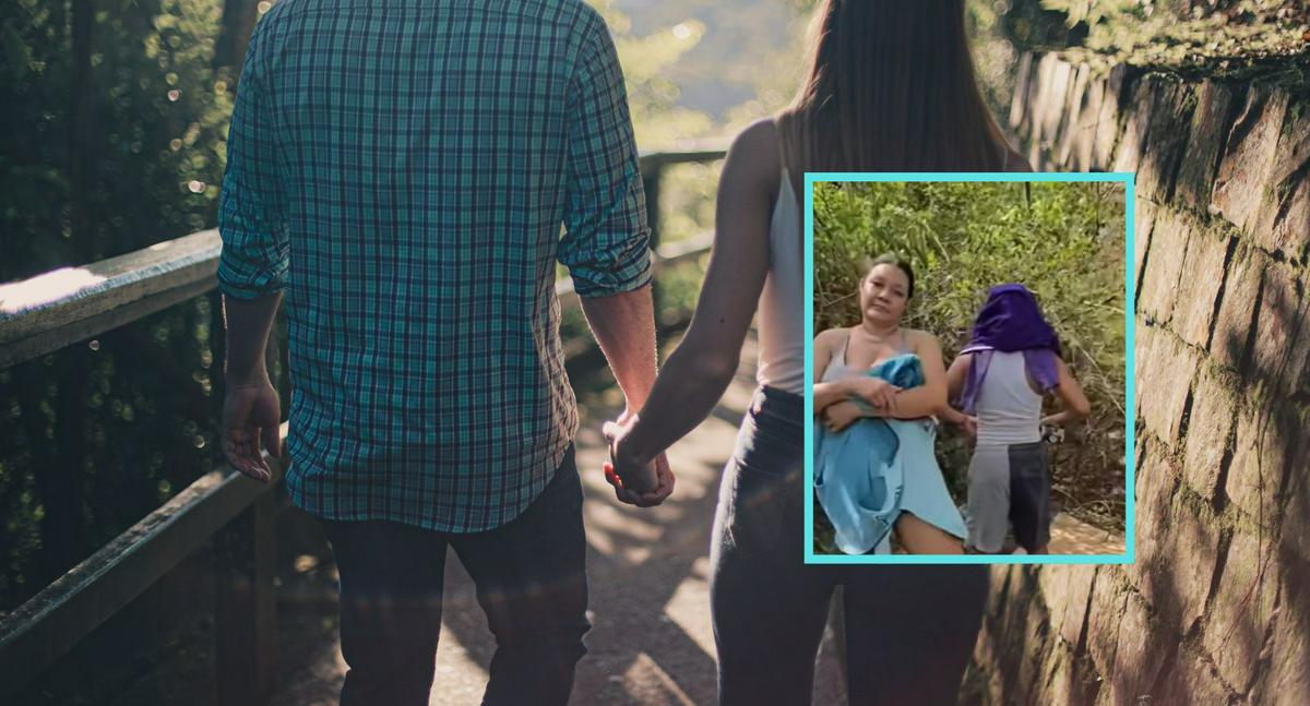 Las imágenes, grabadas en un sector montañoso, muestran el momento en que el hombre llega al lugar y encuentra a los dos implicados con poca ropa. La mujer intenta cubrirse con una sudadera mientras su presunto amigo permanece sentado sobre un pedazo de cartón, evitando mostrar su rostro y sin pronunciar una sola palabra.