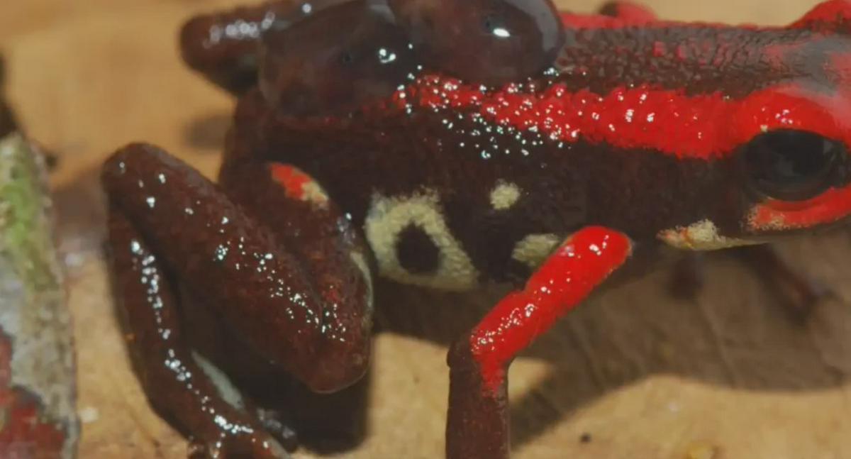 En los ecosistemas del departamento del Quindío puede observarse un fenómeno parental singular: algunos machos de ranas de la familia Dendrobatidae transportan a sus renacuajos sobre la espalda. Este comportamiento, aunque infrecuente entre los anuros —grupo que incluye a todas las ranas y sapos—, destaca en especies como Andinobates bombetes, Colostethus ucumari y Leucostethus brachistriatus. Según el libro digital "Anfibios del departamento del Quindío, Colombia", las hembras de estas especies depositan sus huevos en ambientes húmedos y protegidos del bosque, como hojarasca, cavidades vegetales, entre raíces o bajo troncos caídos. Tras la eclosión, el macho asume la delicada tarea de trasladar a los renacuajos adheridos a su cuerpo, llevándolos hasta fuentes acuáticas donde podrán continuar su desarrollo. Este proceso, puntualizan los autores, incrementa considerablemente las posibilidades de supervivencia de la descendencia.